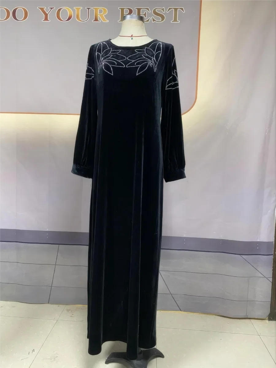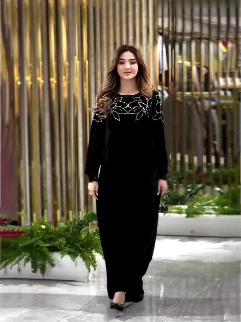 Abaya de Soirée en Velours Noir – Robe de Fête Ramadan ; Aïd 2026 – Paris, Bruxelles, Londres, Turquie