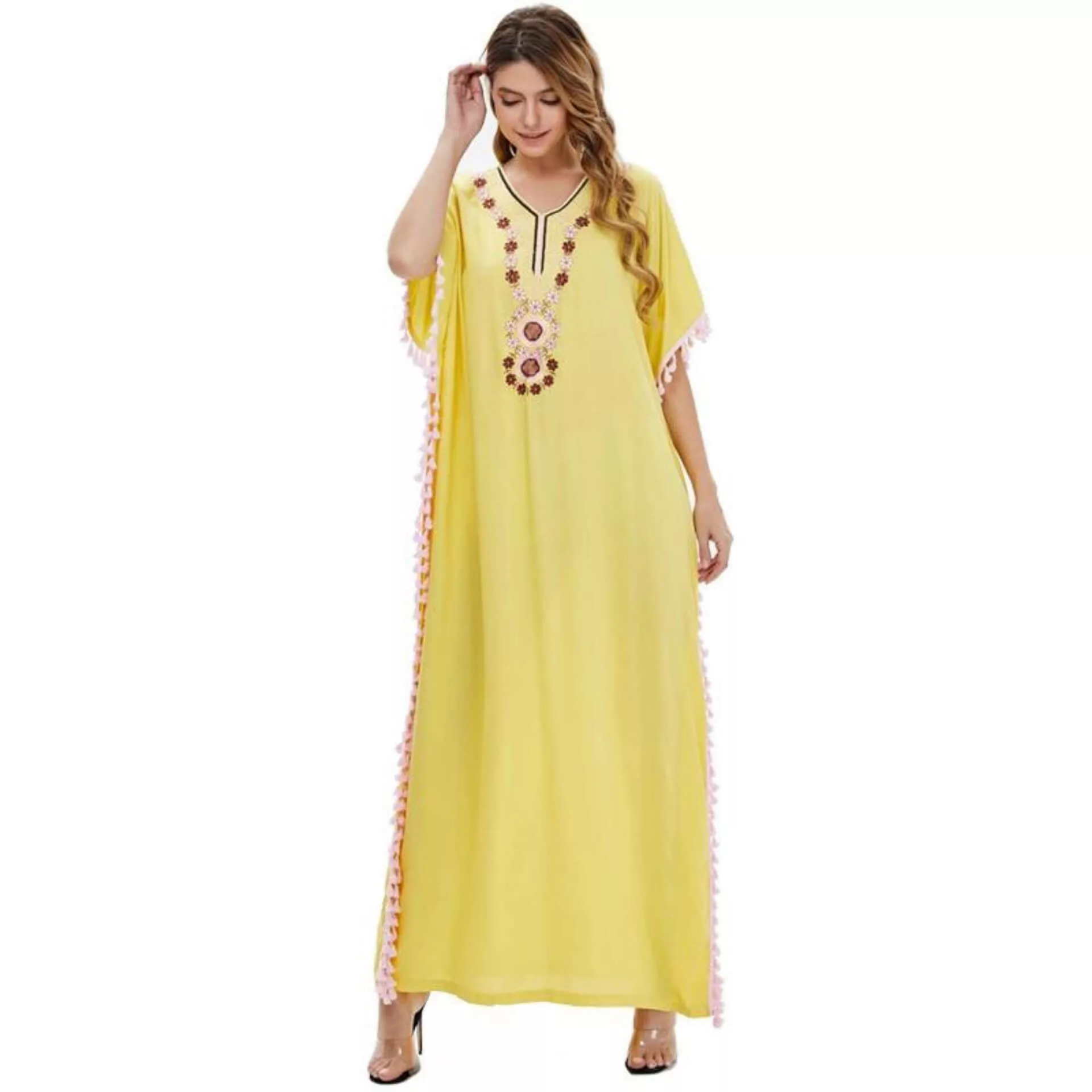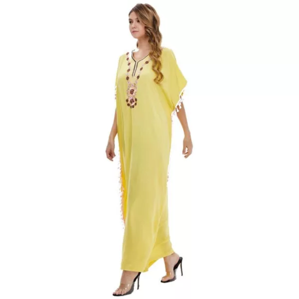 Découvrez notre dernière robe marocaine tendance avec son coloris jaune élégant et ses broderies très qualitative !