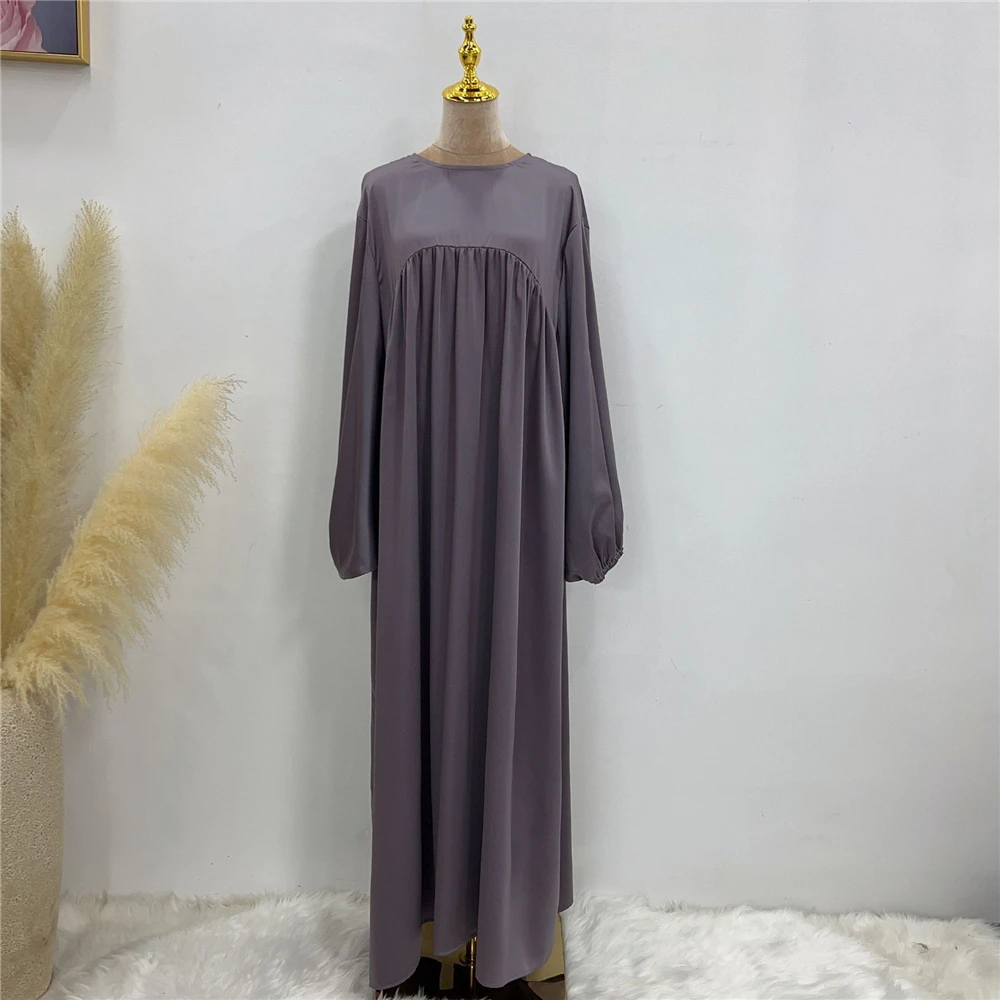 Adoptez une allure sophistiquée avec notre robe abaya grise en tissu soyeux. Coupe ample avec buste froncé et manches bouffantes pour un confort royal. Idéale pour l’Aïd et les réceptions. Livraison rapide en France et Europe.