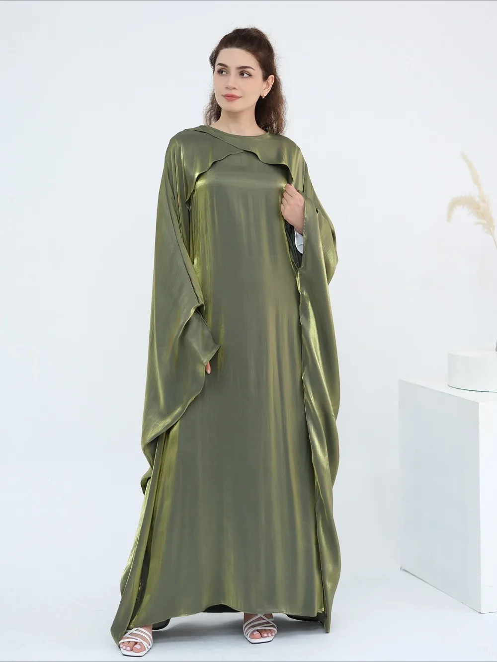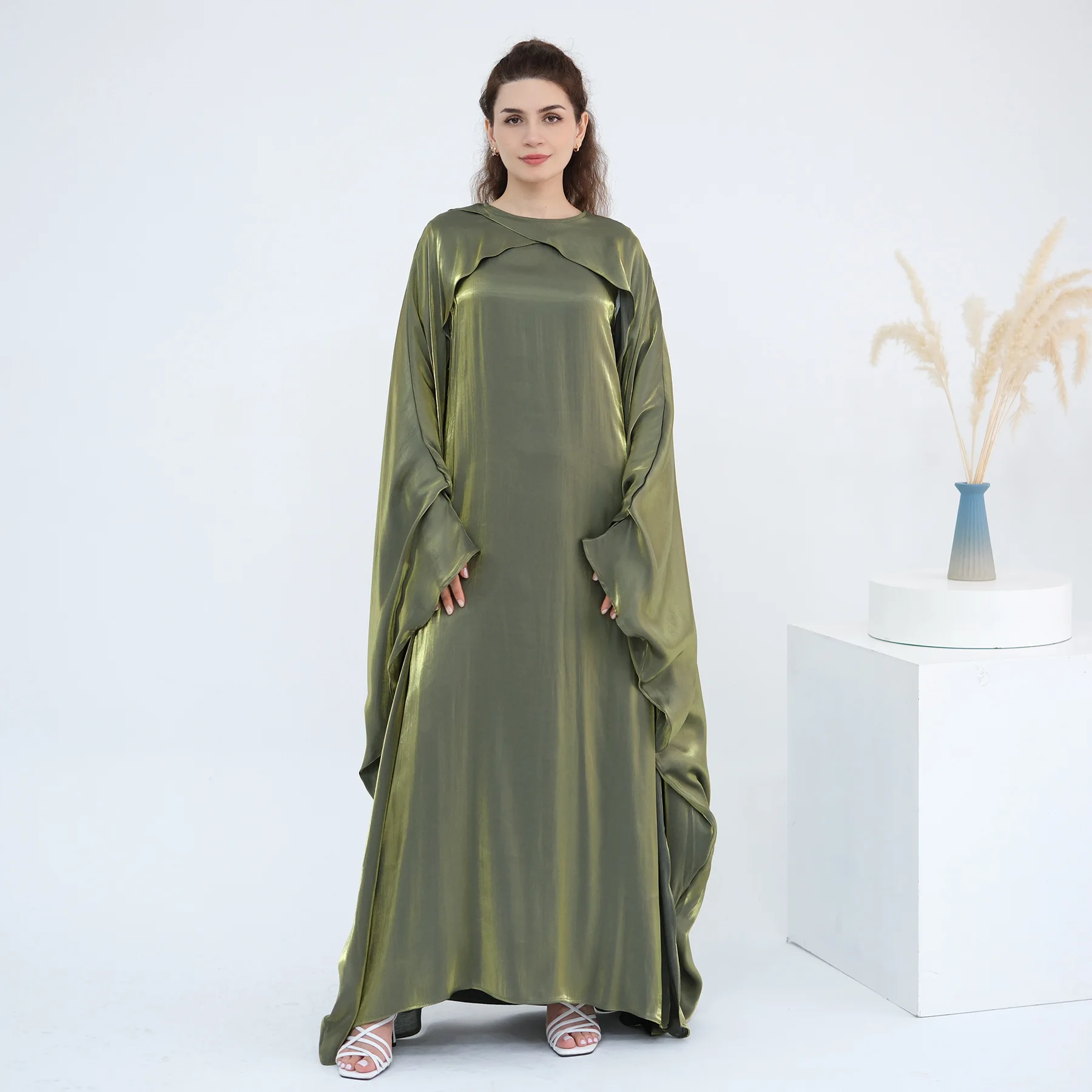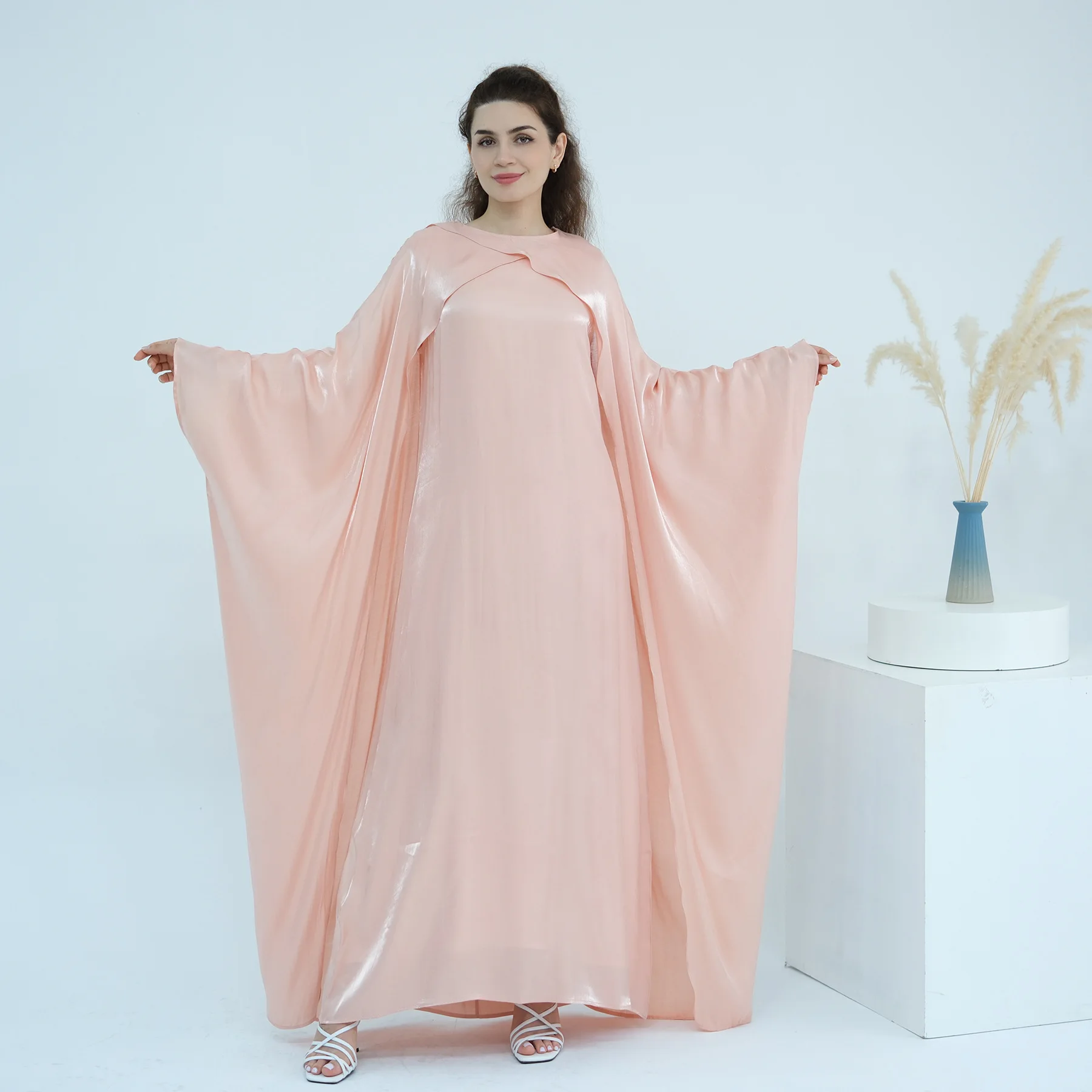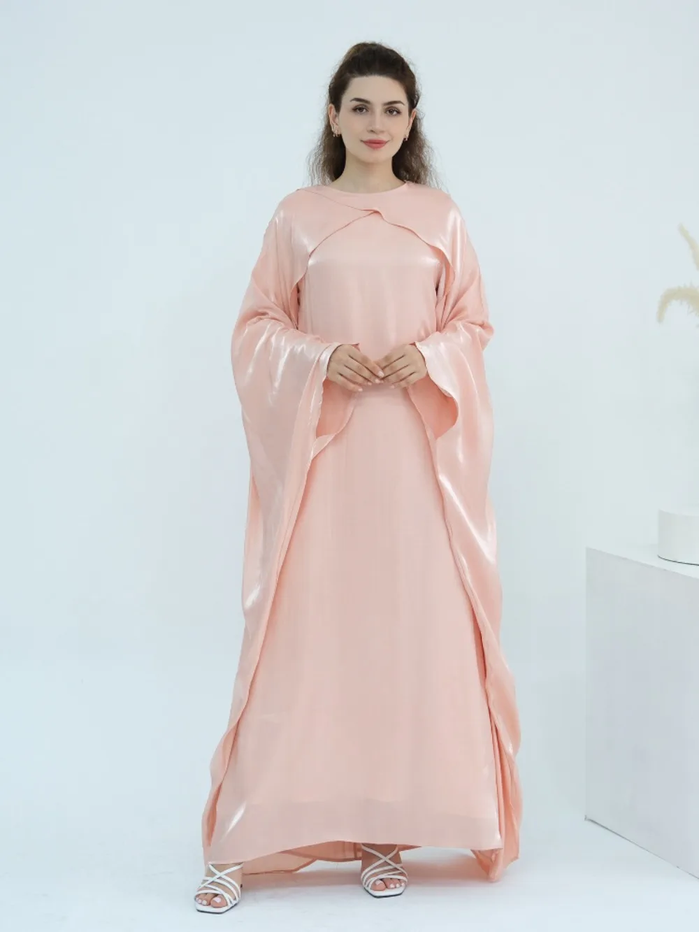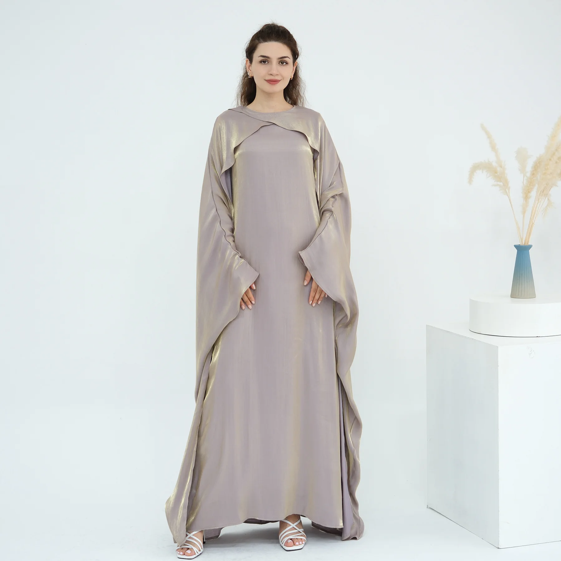 L’Abaya pas cher de Luxe “Reflet Royal” est une œuvre d’art textile conçue pour les moments les plus précieux. Sa teinte mauve poudré est sublimée par un fini satiné aux éclats dorés qui capturent la lumière à chaque mouvement. Ce modèle se distingue par sa cape intégrée aux épaules, créant un drapé majestueux qui apporte une envergure digne des plus grands palais de Dubaï.