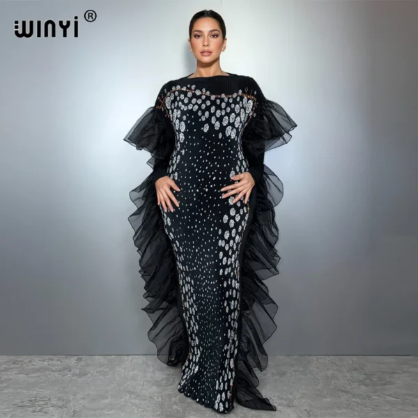 Caftan de Luxe à Volants Paris – Abaya de Soirée Dubaï Chic pour France, Maroc, Algérie, Canada, Belgique et US
