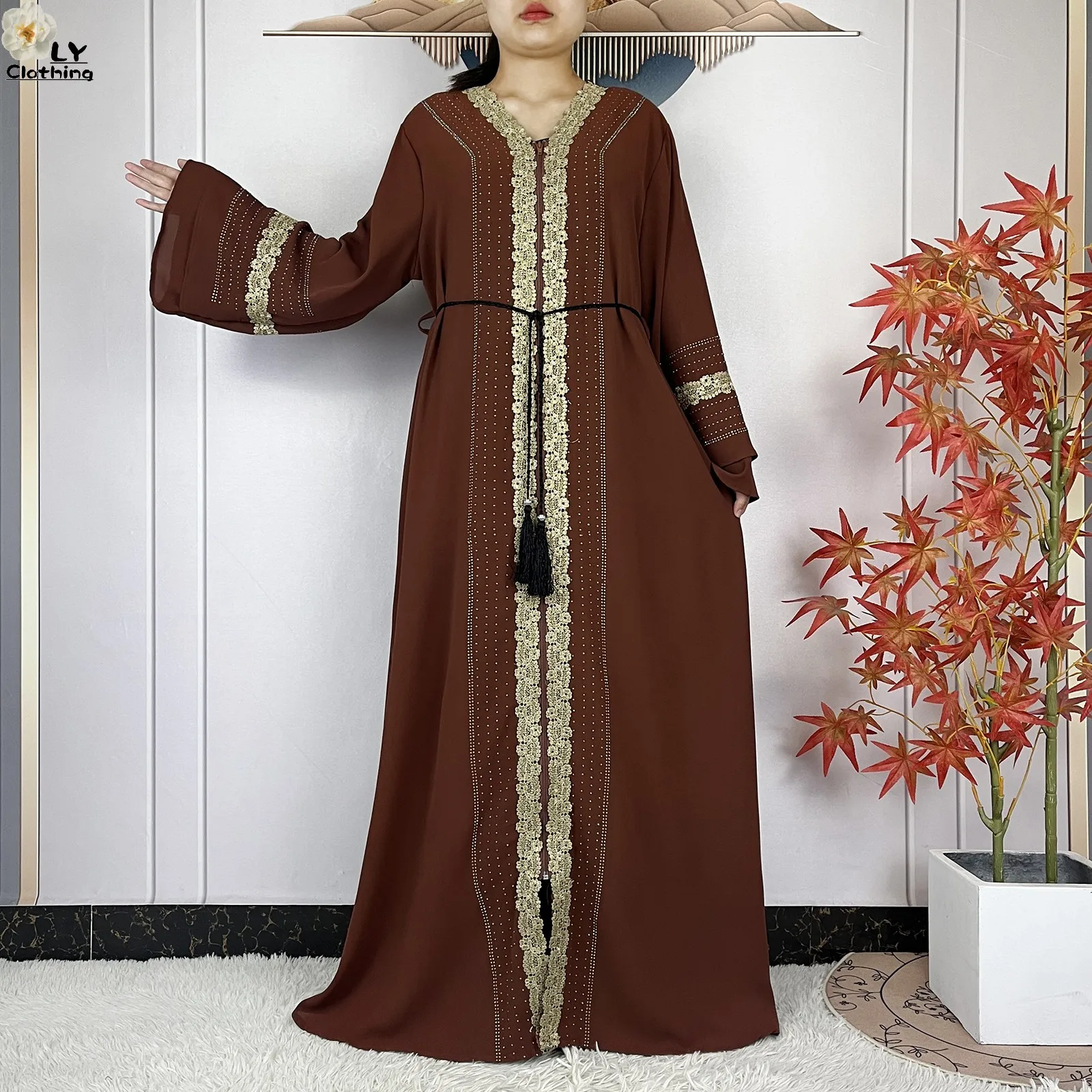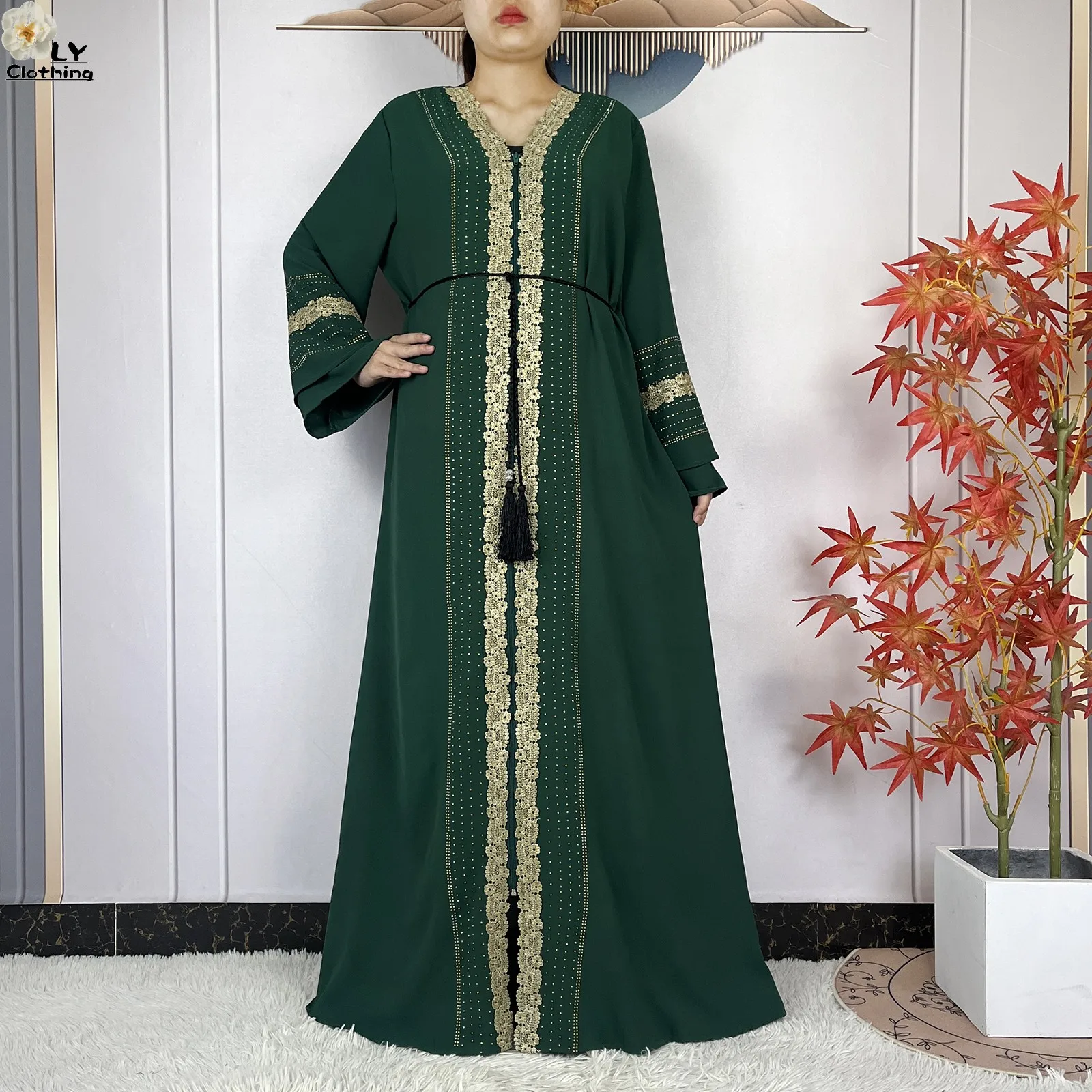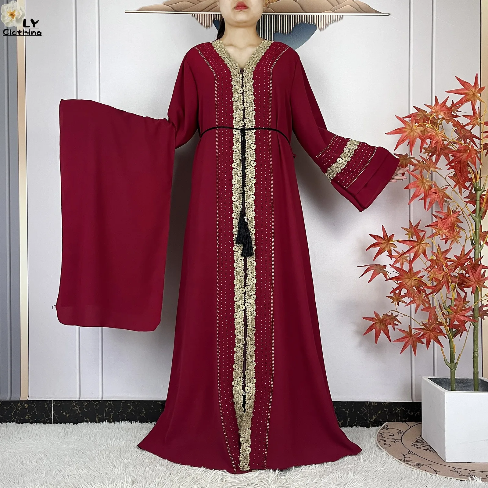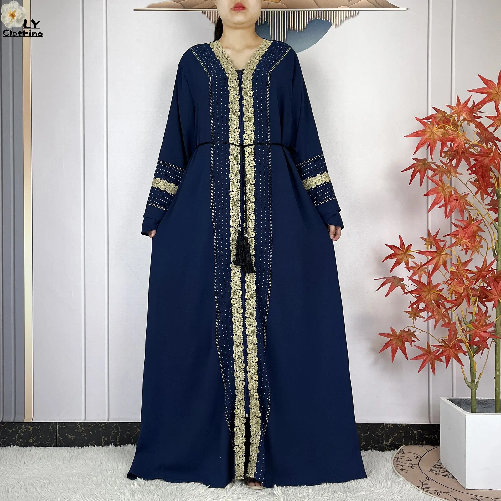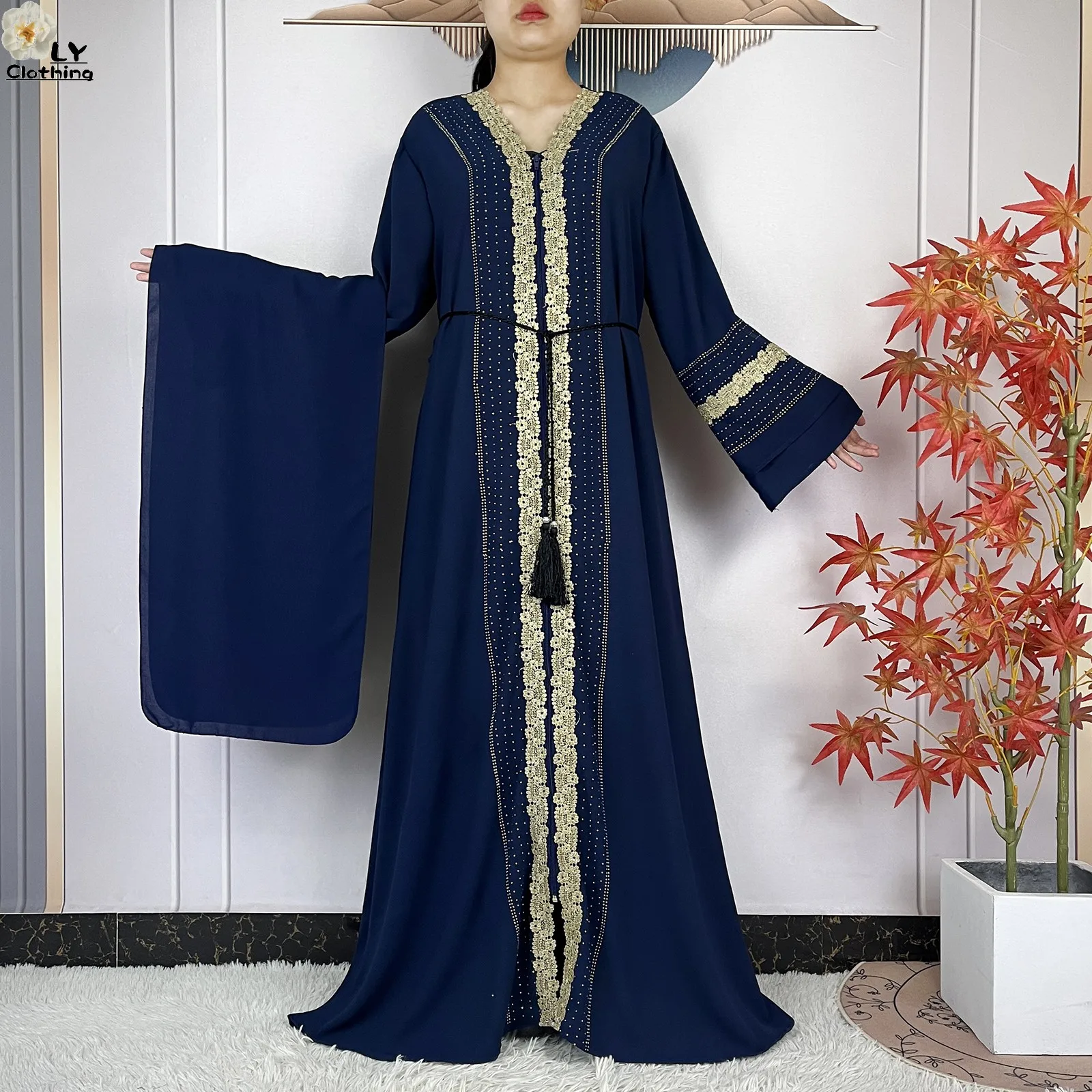 Ensemble Complet : Elle est livrée avec son Hijab (écharpe) assorti, orné des mêmes finitions, vous offrant une tenue clé en main sans faute de goût.