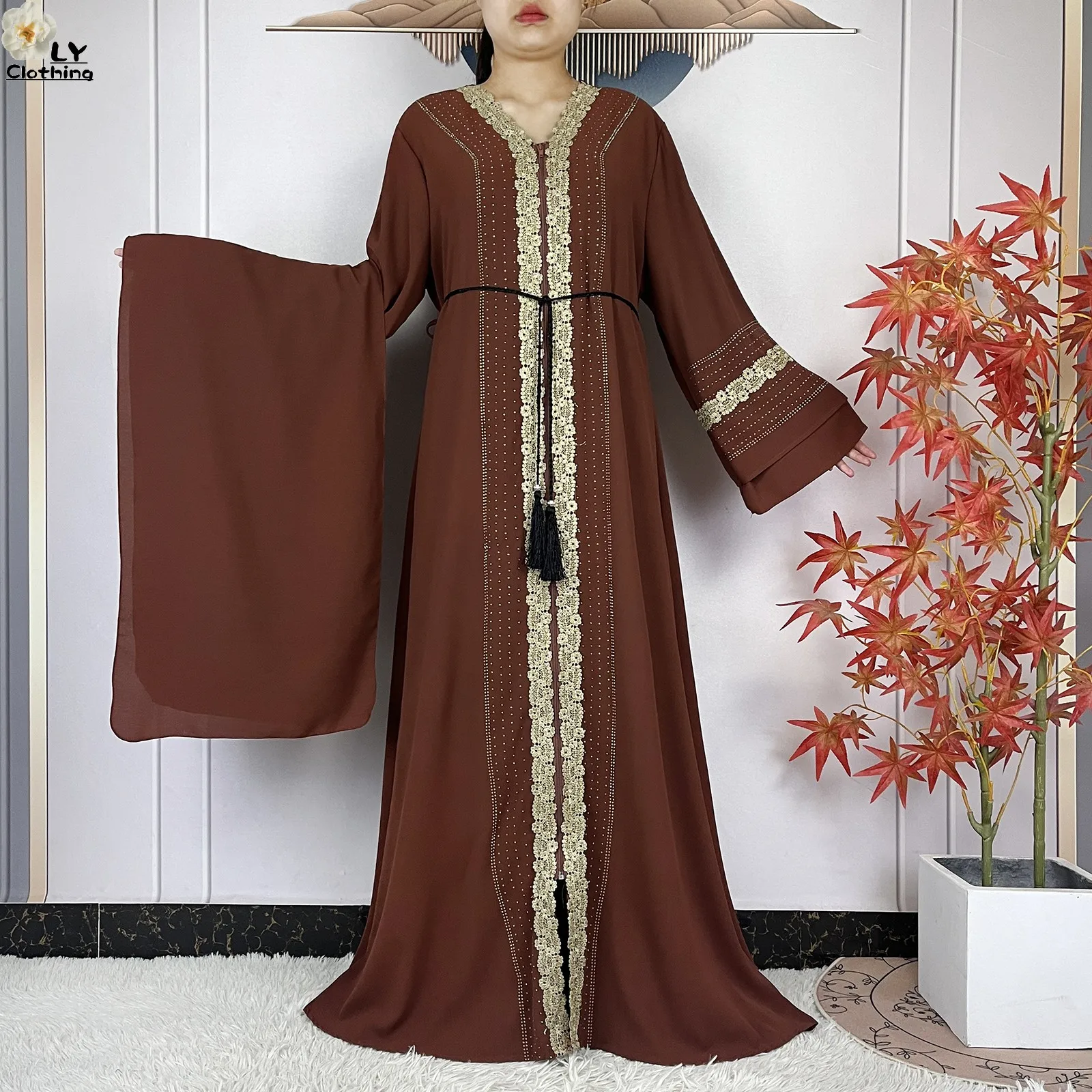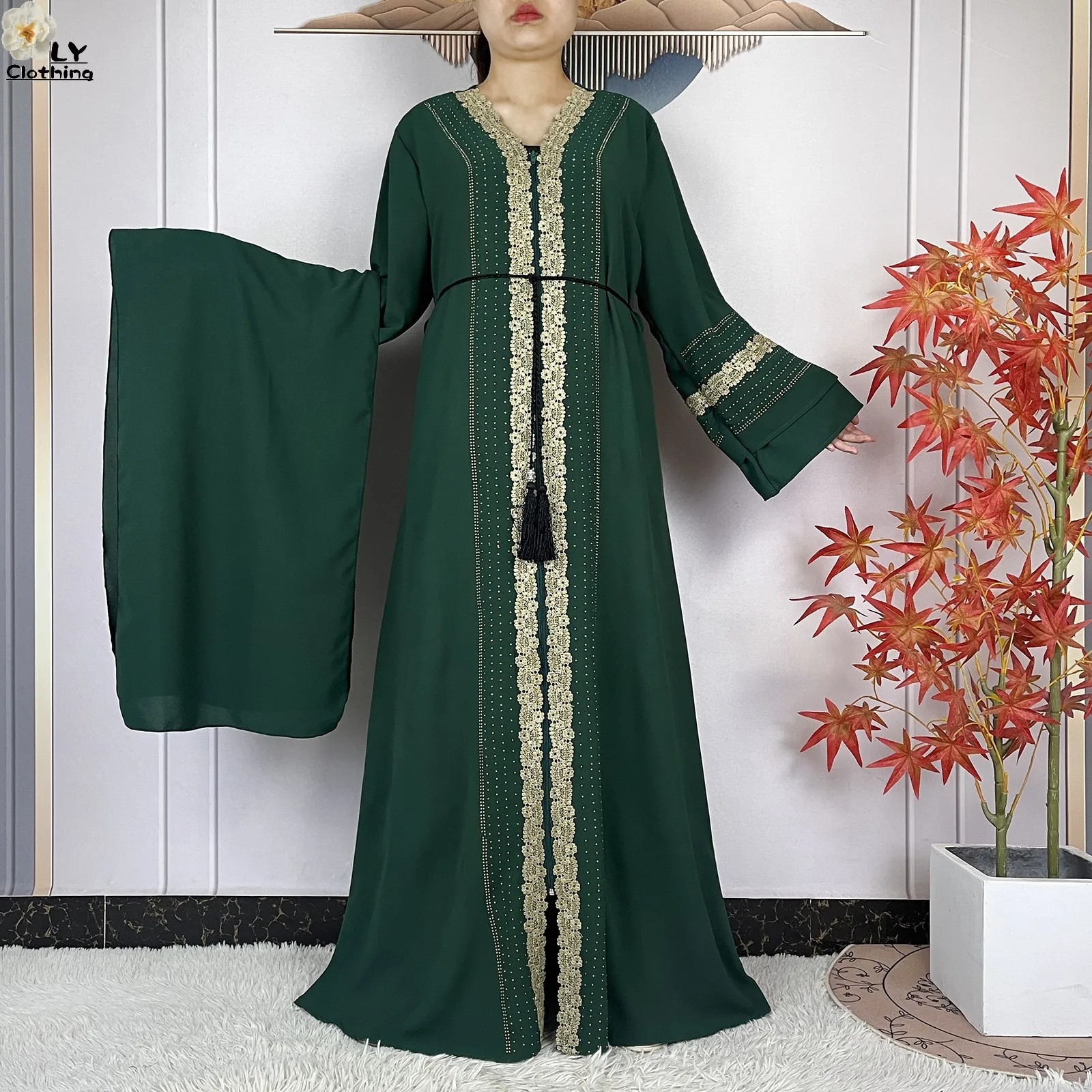 Inspirée par les dernières tendances des podiums de Dubaï pour l’année 2025, cette abaya adopte une coupe “Open Abaya” (ouverte) qui permet une superposition de styles infinie. Son design se distingue par des manches cloches généreuses qui apportent une dimension théâtrale et aérienne à chacun de vos mouvements.