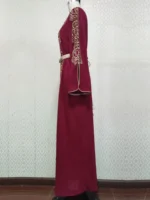 Soyez le premier à laisser votre avis sur “Caftan de Luxe “Altesse Pourpre” avec Broderies d’Or et Perlage”