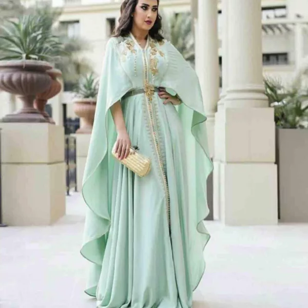 UN CAFTAN VERT D’EAU EN MOUSSELINE DE SOIE !