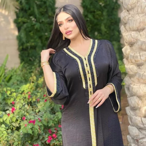 Une conception élégante et des détails dorées, cette robe orientale est très moderne et classe ! Elle sera idéale lors de vos sorties ou même simplement pour des journées à la maison !