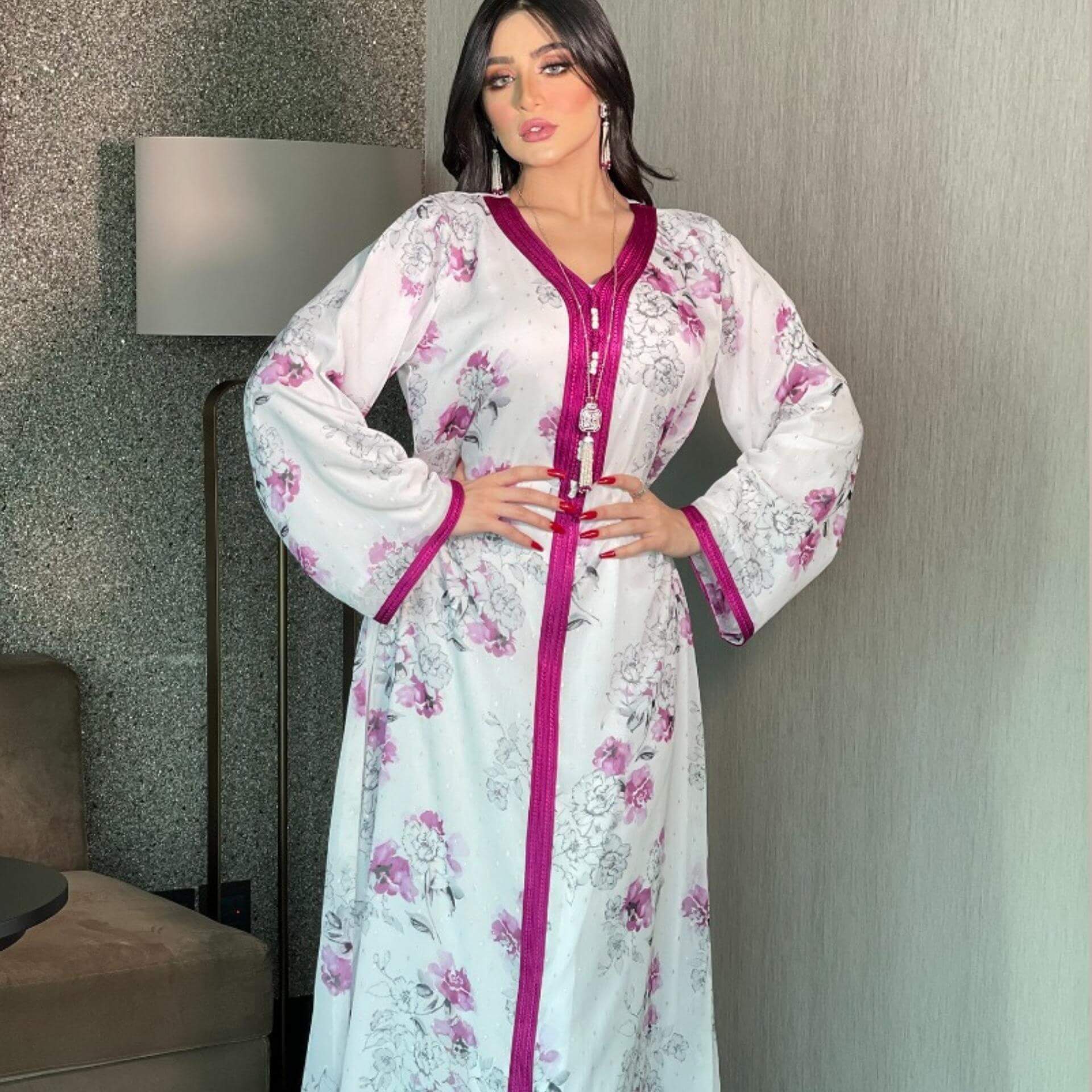 Une tenue orientale confortable et moderne avec un coloris bleu élégant, alors optez pour ce Caftan Marocain Argenteuil et découvrez notre collection de caftans marocains ainsi que l’ensemble de nos caftans !