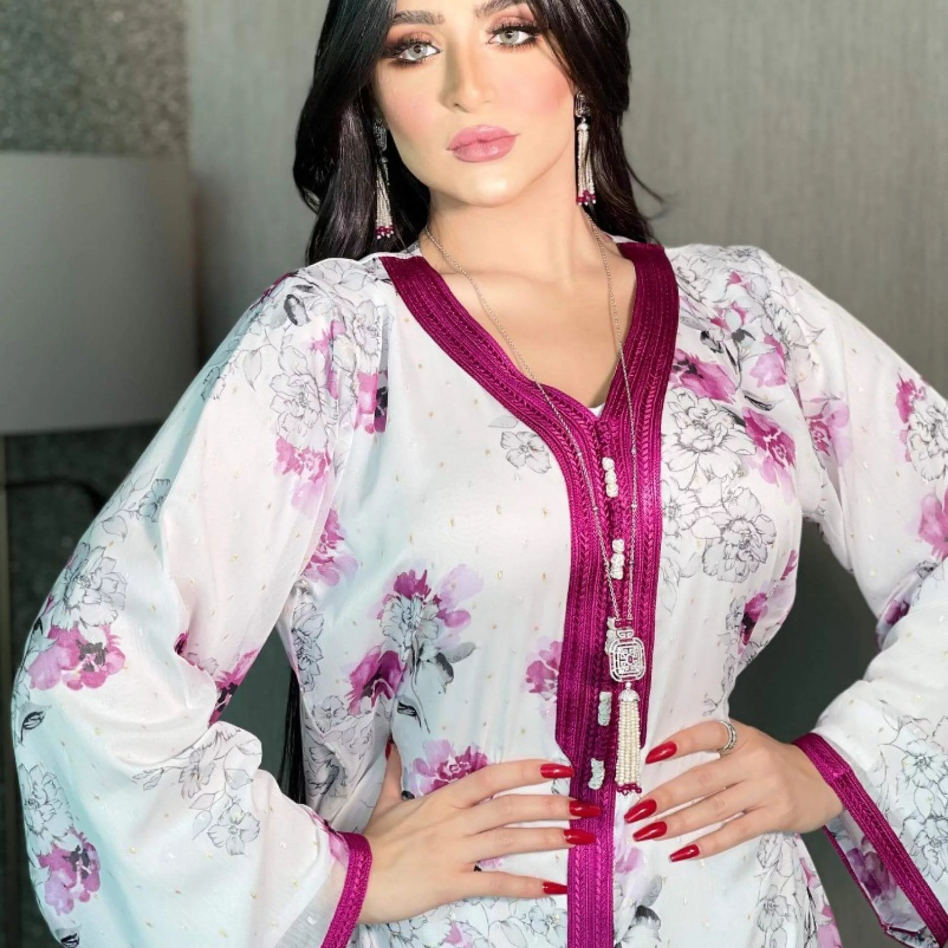 Avec ses motifs floraux, cette tenue kabyle est à la fois élégante et classe ! De plus, son coloris blanc est idéale lors de vos déplacements !