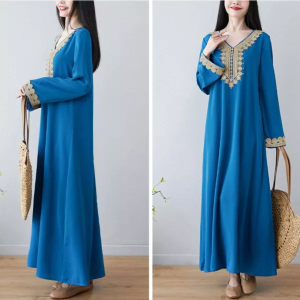 Voici une de notre toute dernière création avec son coloris bleu moderne et son rajout de broderie dorée cette tenue vous permettra d’affirmer l’élégance de la mode arabe !