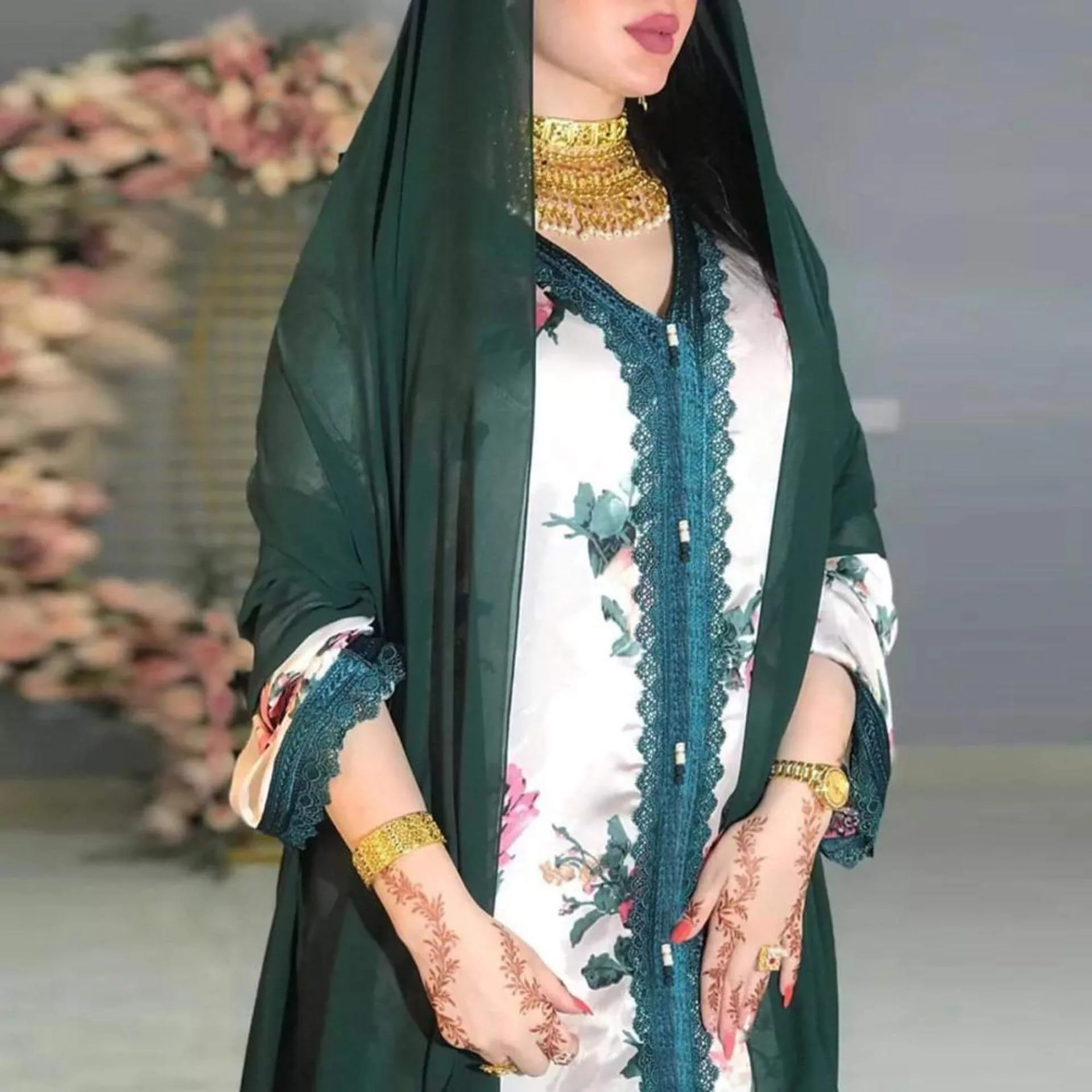 Avec ses broderies de couleur verte se situant le long de cette robe arabe, elle affirme la modernisation des tenues orientales d’Antan ! De plus, ses différents motifs rendent cette tenue à la fois classe et agréable à porter même pendant de longues heures au cours de votre journées !
