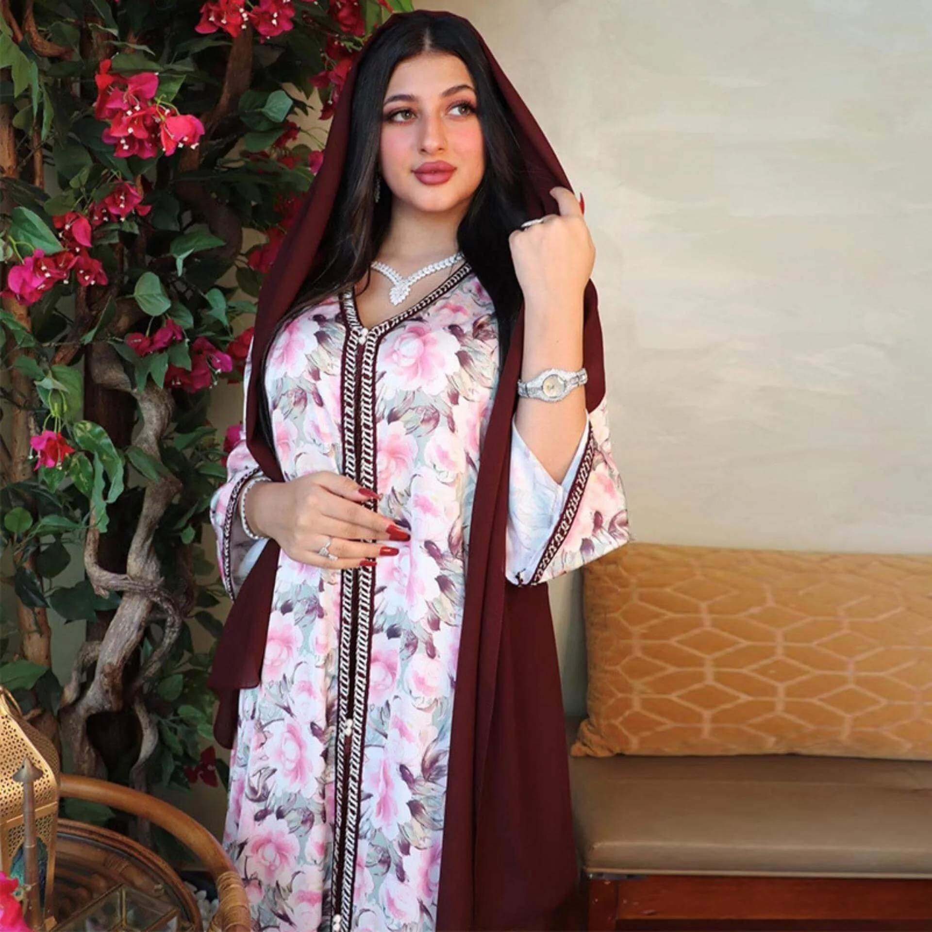 Une tenue marocaine classe et confortable pour votre quotidien ! Le modèle que nous vous proposons ici est élégant avec ses motifs floraux et son coloris moderne !
