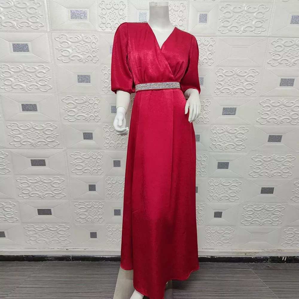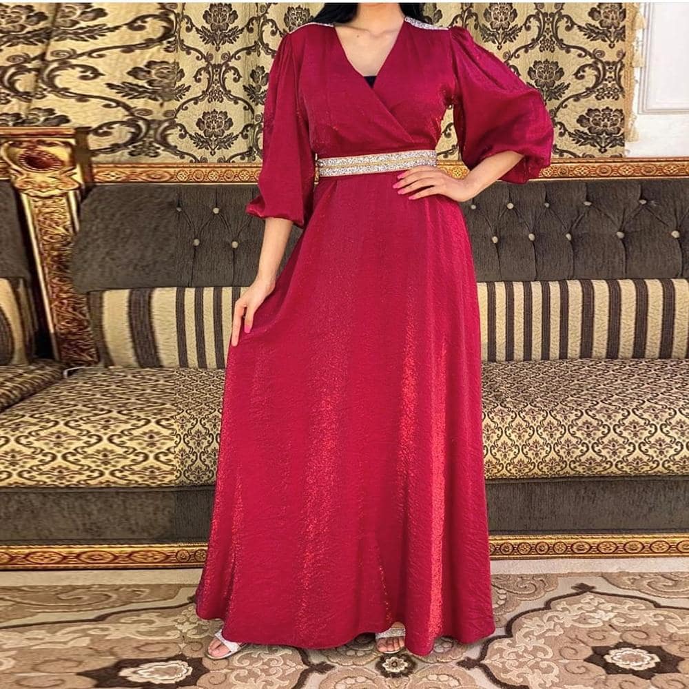 Ce caftan robe rouge est à manches mi-courtes avec des décorations sur les épaulettes. Ce caftan robe est un joli choix pour les grandes occasions. Il est livré avec une ceinture qui peut aider à affiner ta taille et te faire paraître plus mince. Le tissu de cette robe caftan de couleur rouge est confortable et a une bonne élasticité.