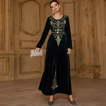 Conçue en Velours, il est reconnu pour sa grande douceur et sa grande fluidité, ce qui fait de cette tenue orientale, une robe très agréable à porter tout au long de votre journée !