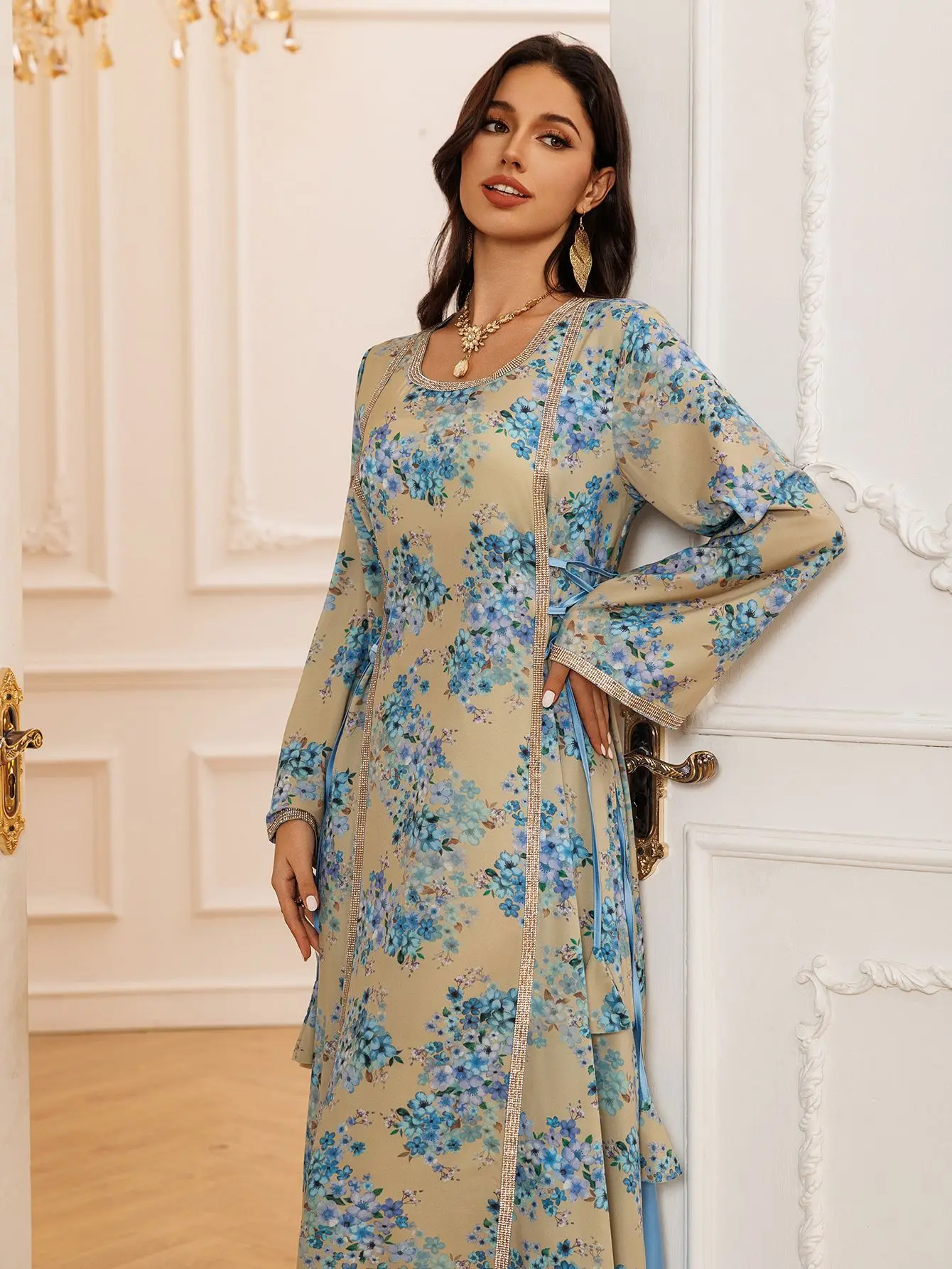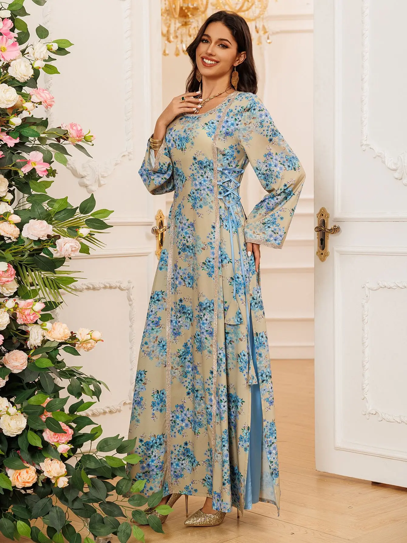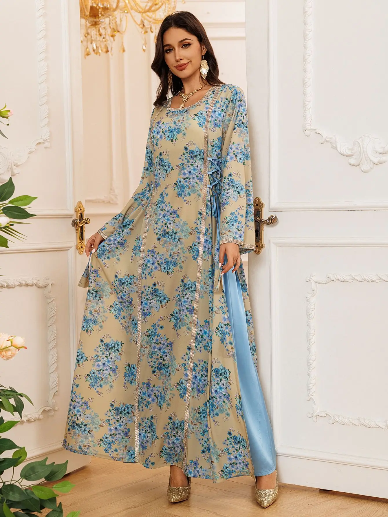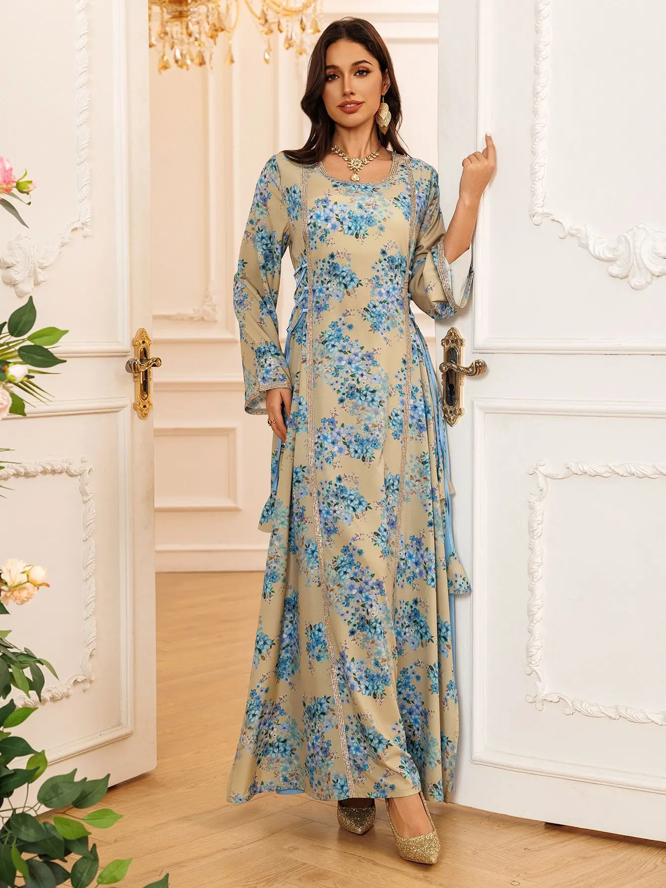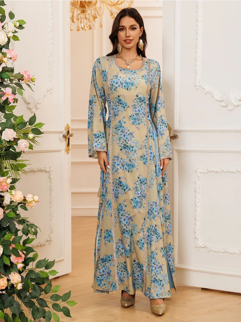 - Prêt-à-porter Facile : Une pièce qui se suffit à elle-même, facile à associer avec un hijab simple ou des sandales dorées.