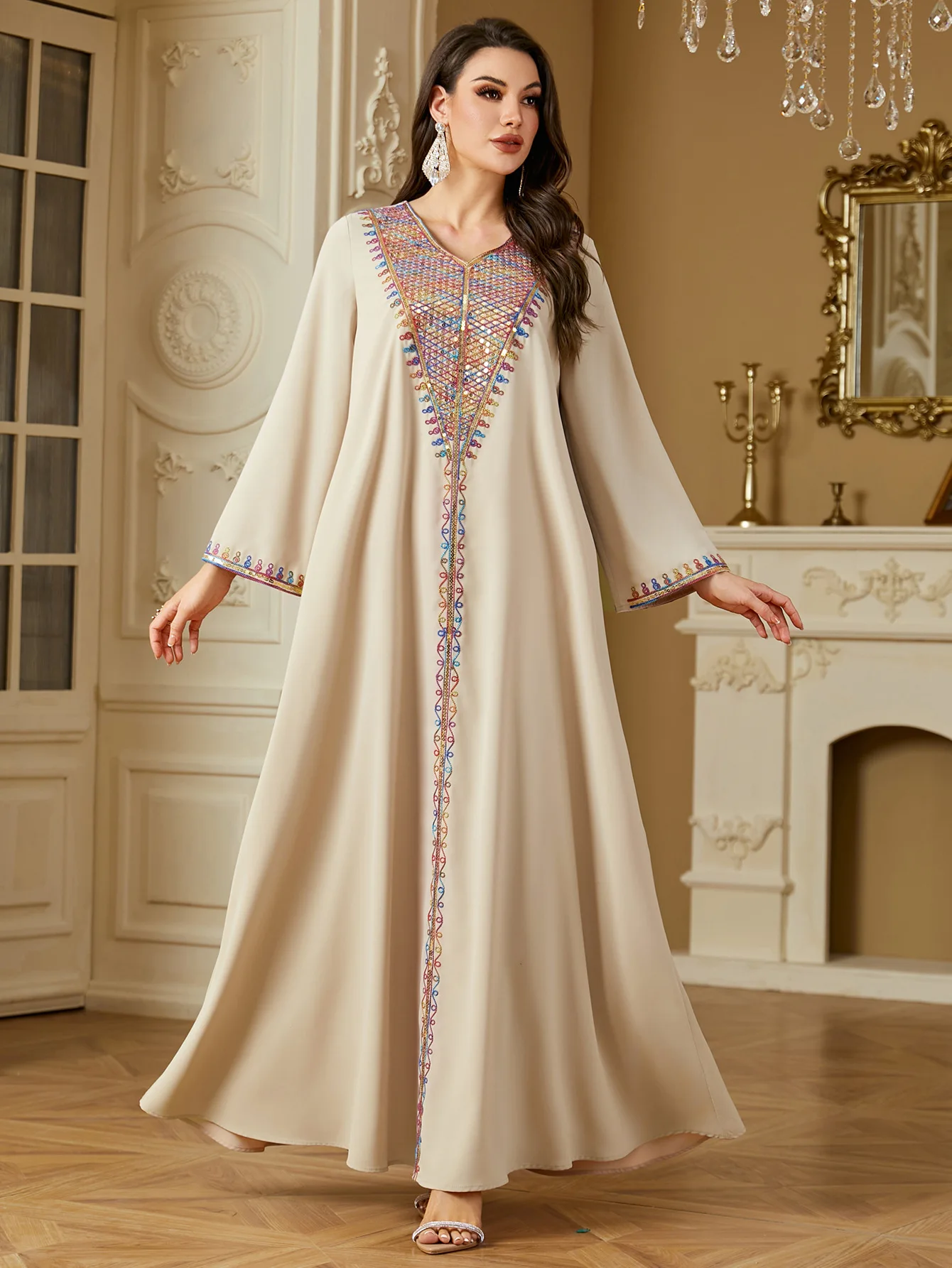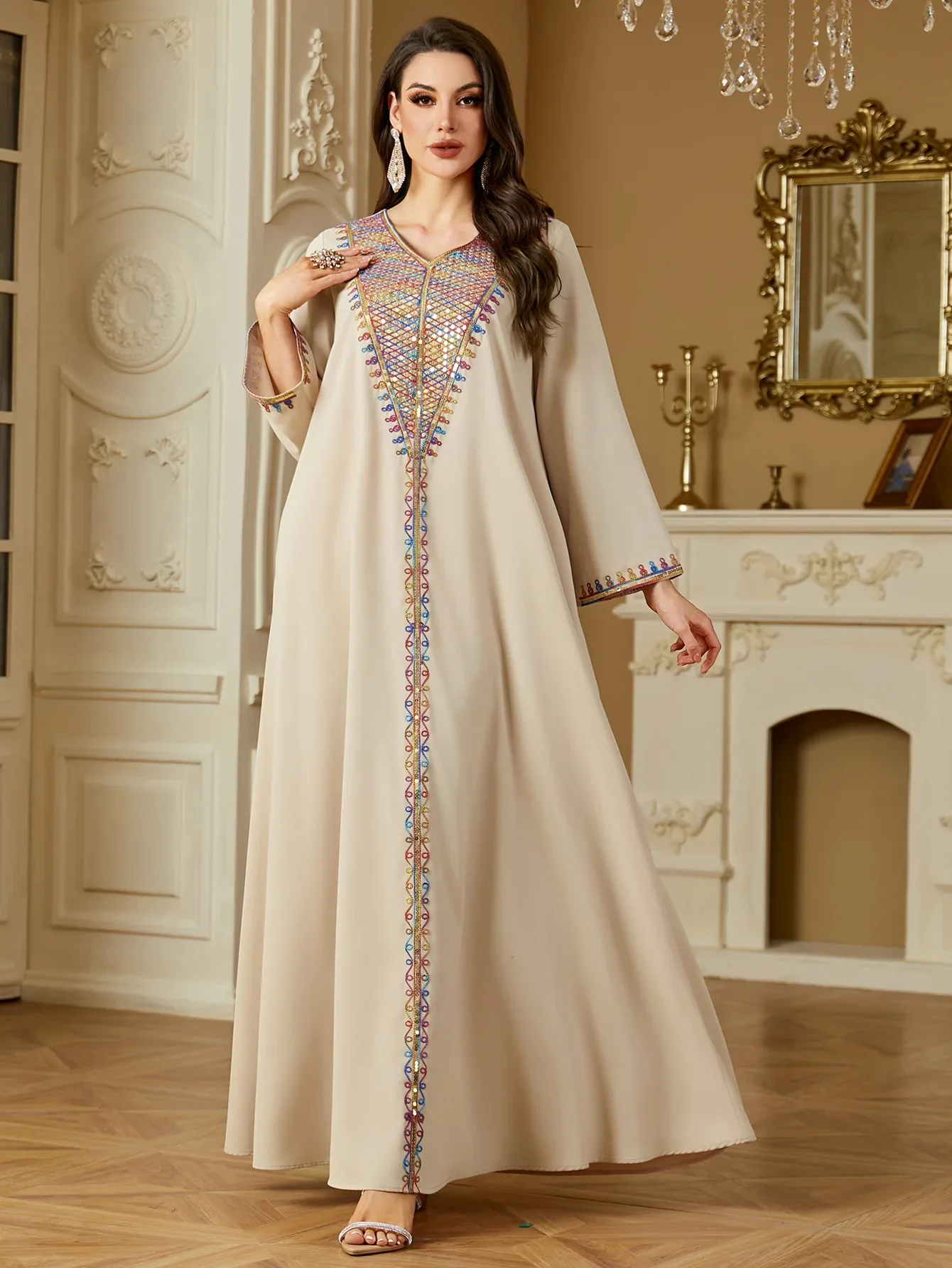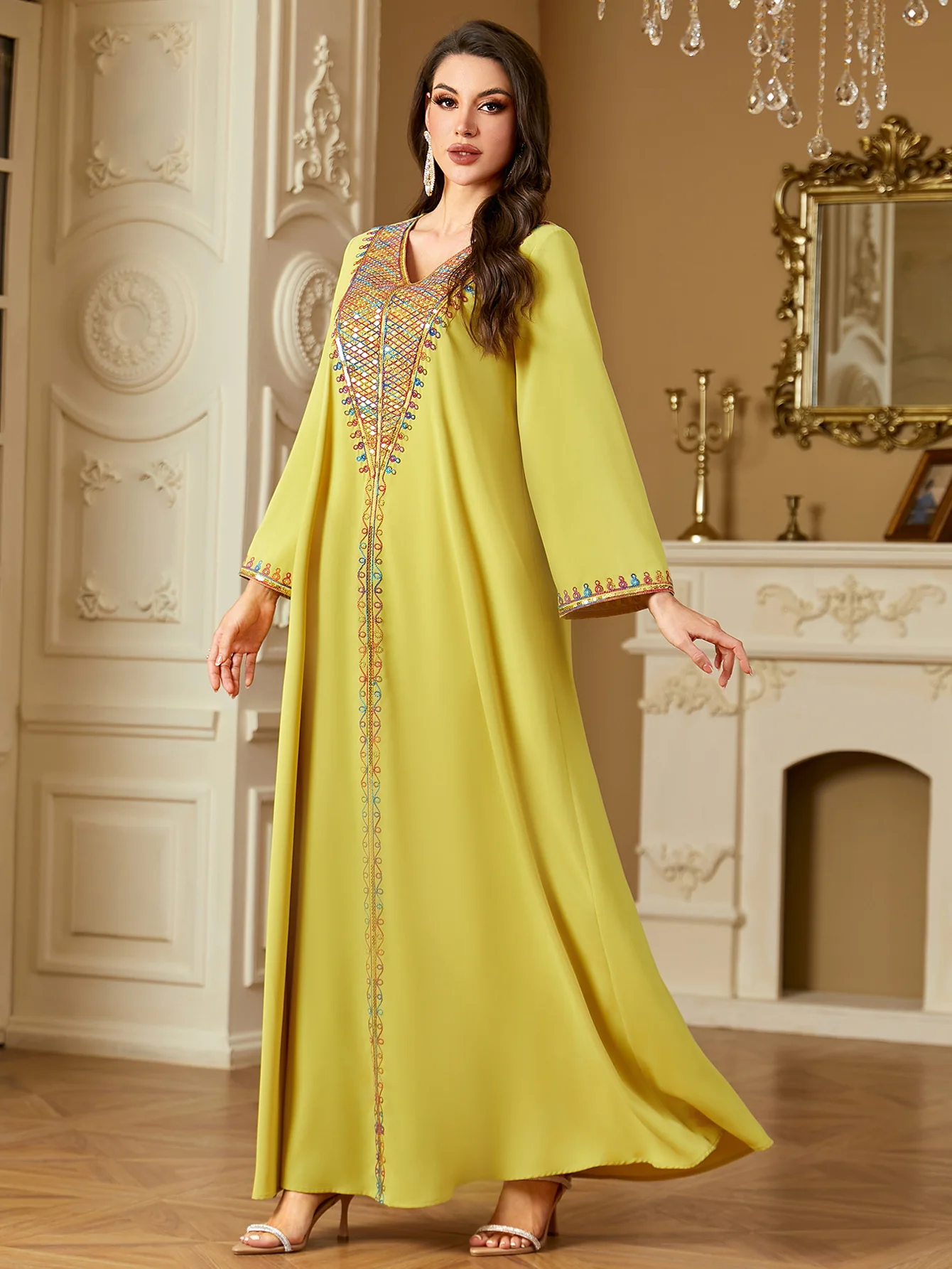 Sa coupe évasée et ses manches longues offrent une fluidité incomparable, rappelant le confort d’une Abaya tout en gardant l’ADN du Caftan. Que vous soyez à Paris, Lyon ou Bruxelles, cette tenue vous assure une allure élégante et distinguée lors de vos réceptions familiales ou religieuses.