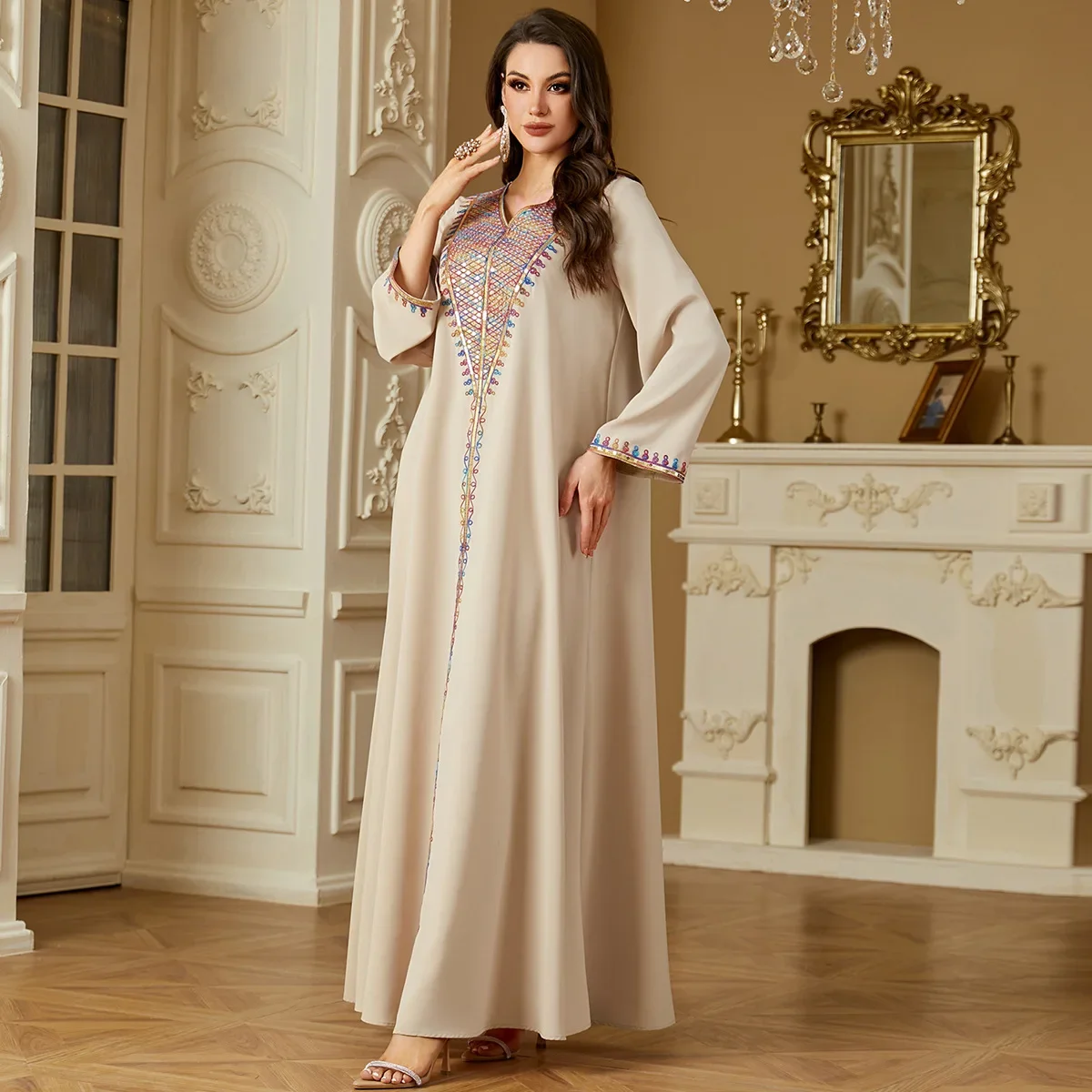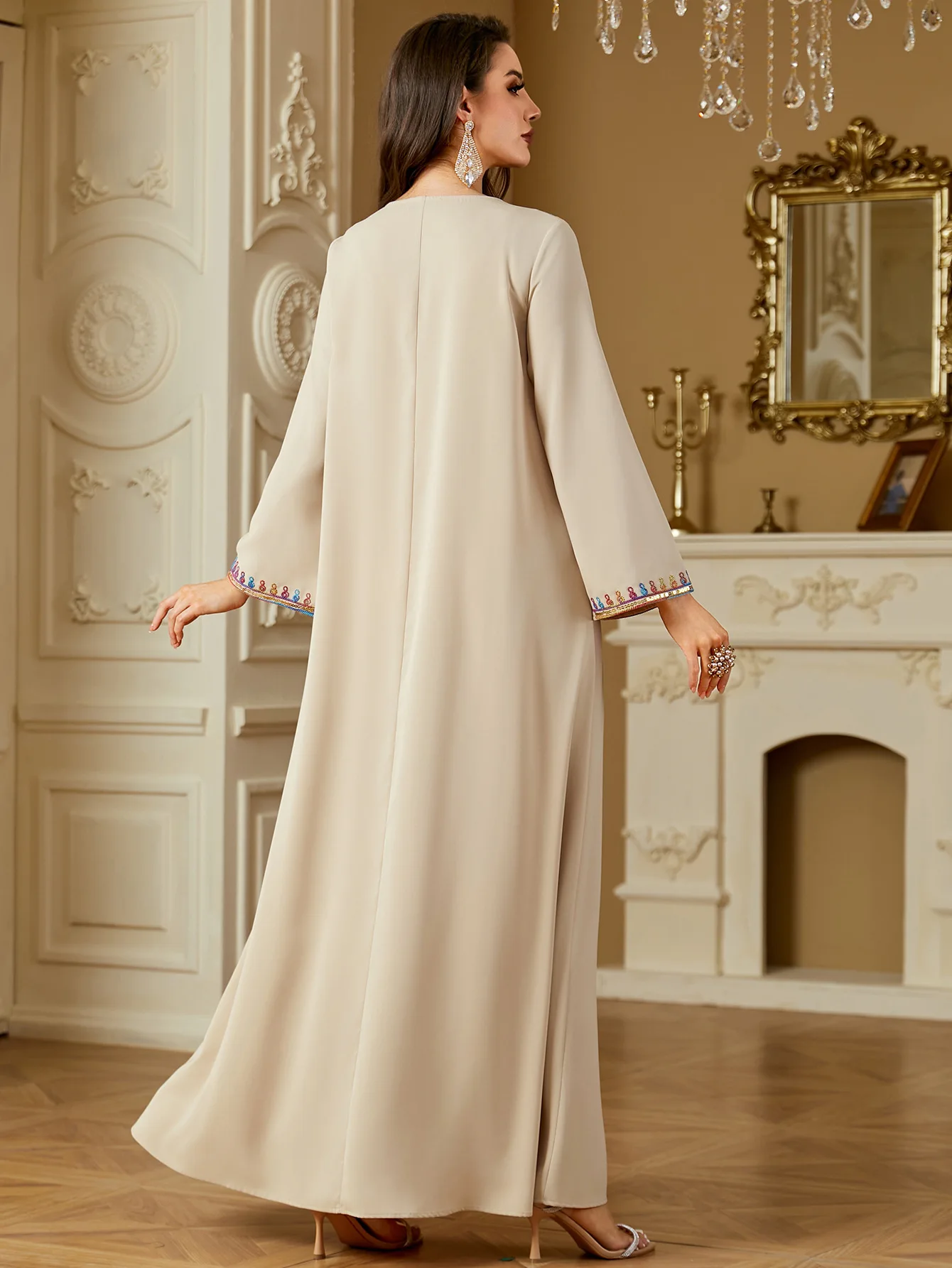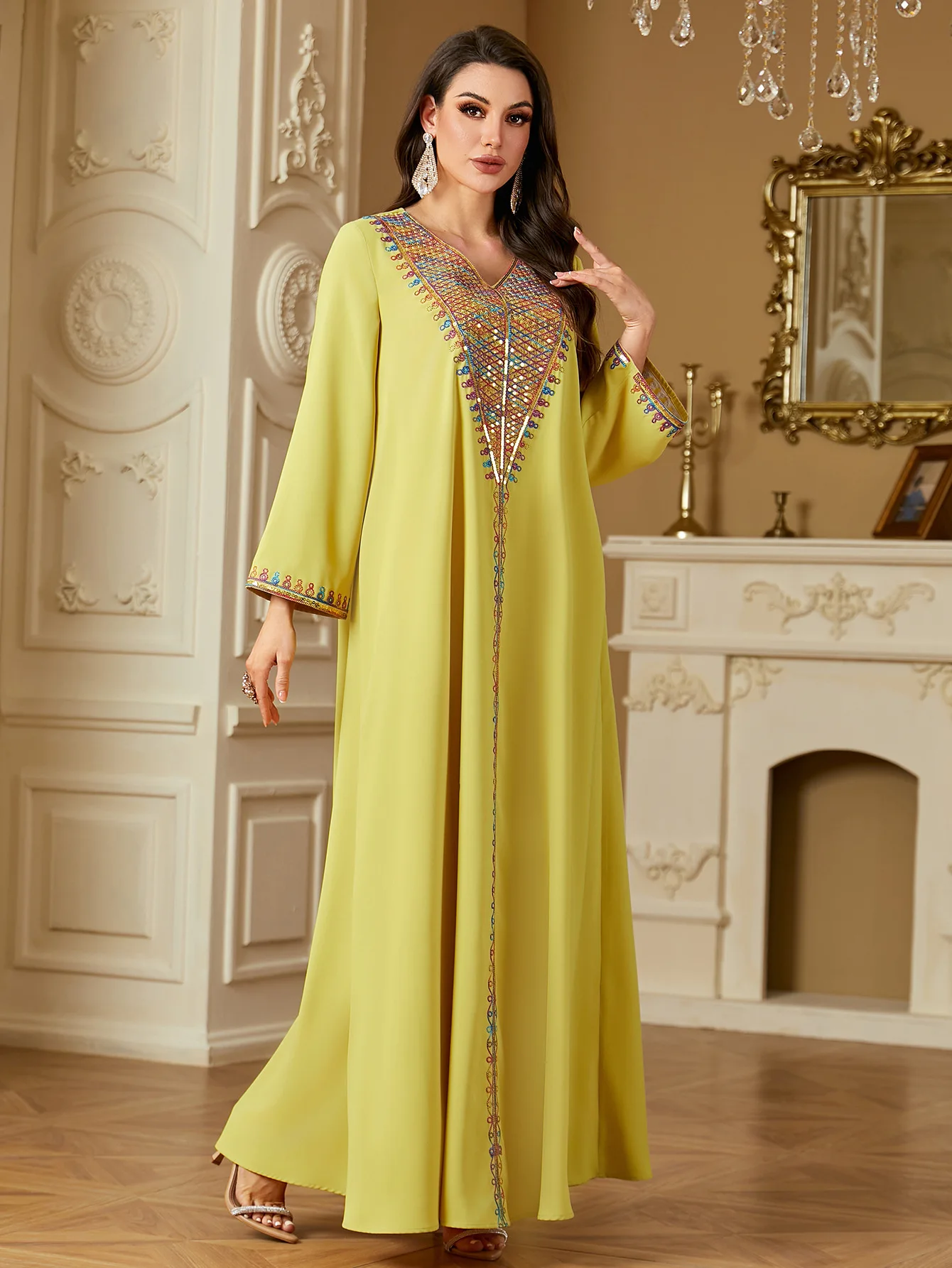 Sa coupe évasée et ses manches longues offrent une fluidité incomparable, rappelant le confort d’une Abaya tout en gardant l’ADN du Caftan. Que vous soyez à Paris, Lyon ou Bruxelles, cette tenue vous assure une allure élégante et distinguée lors de vos réceptions familiales ou religieuses.