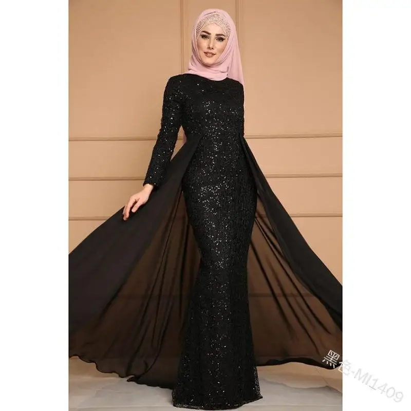 - Silhouette Sculpturale : Sa coupe fourreau/sirène ajustée souligne les courbes avec élégance, tandis que les manches longues apportent une touche de sophistication “Modest Fashion” très appréciée en Île-de-France et en Turquie.