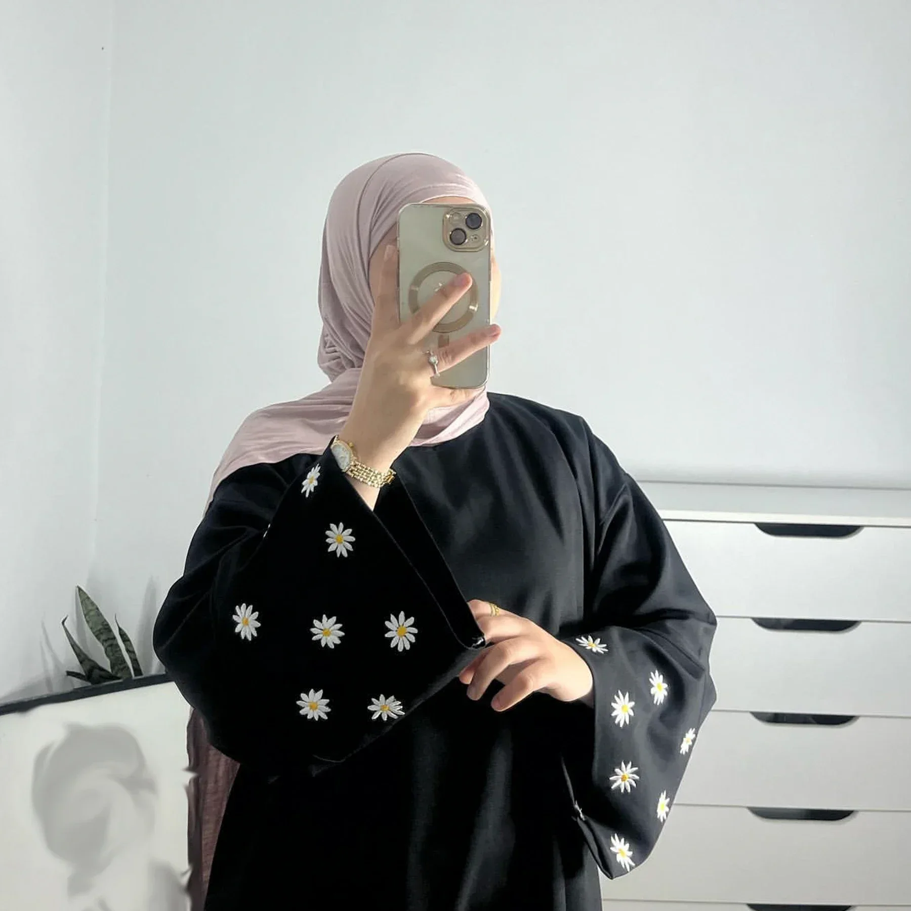 La Coupe : Fidèle au style de Dubaï, la coupe est volontairement ample et droite, respectant les codes de la pudeur tout en offrant une liberté de mouvement absolue. Le col rond épuré permet de mettre en valeur un hijab assorti ou un collier discret.