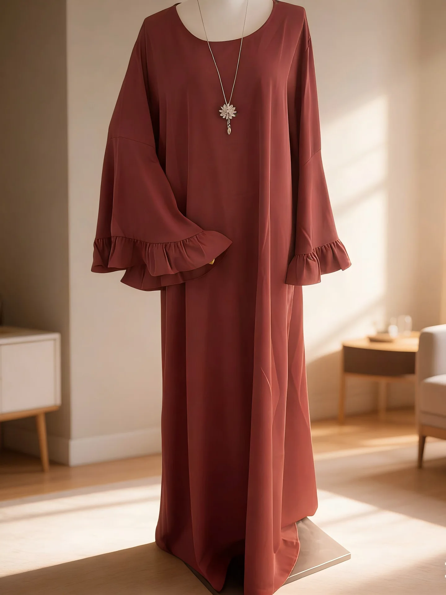 • Accessoires Inclus : Souvent accompagnée de son hijab assorti, elle permet de créer un ensemble harmonieux en un clin d’œil, inspiré des tendances de Turquie.