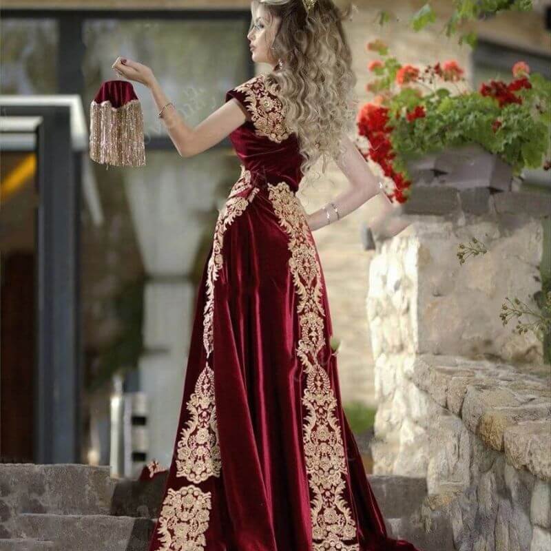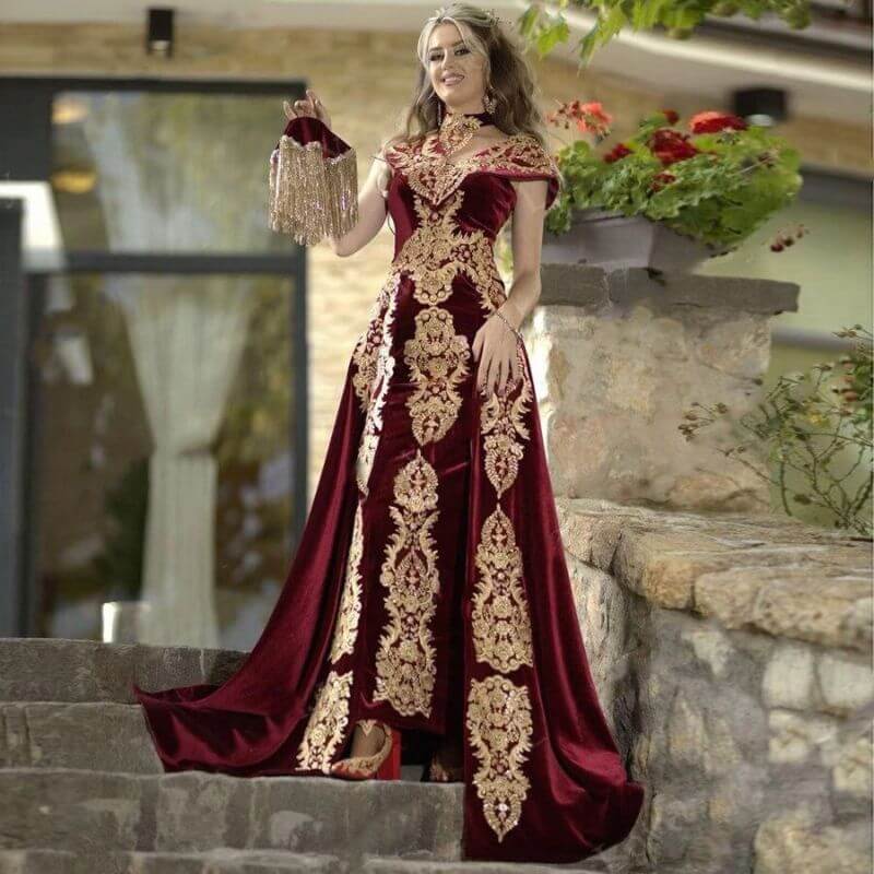 Cette tenue haut de gamme dispose d’un coloris sobre et élégant, elle a aussi été confectionné avec des broderies dorées très classes !