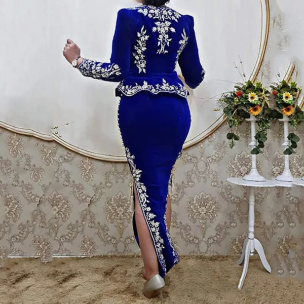 Cette tenue algérienne a été confectionné avec un coloris élégant et des broderies argentées de haute qualité ! De plus, elle est fendue au niveau des jambes pour renforcer le côté classe de cette robe !