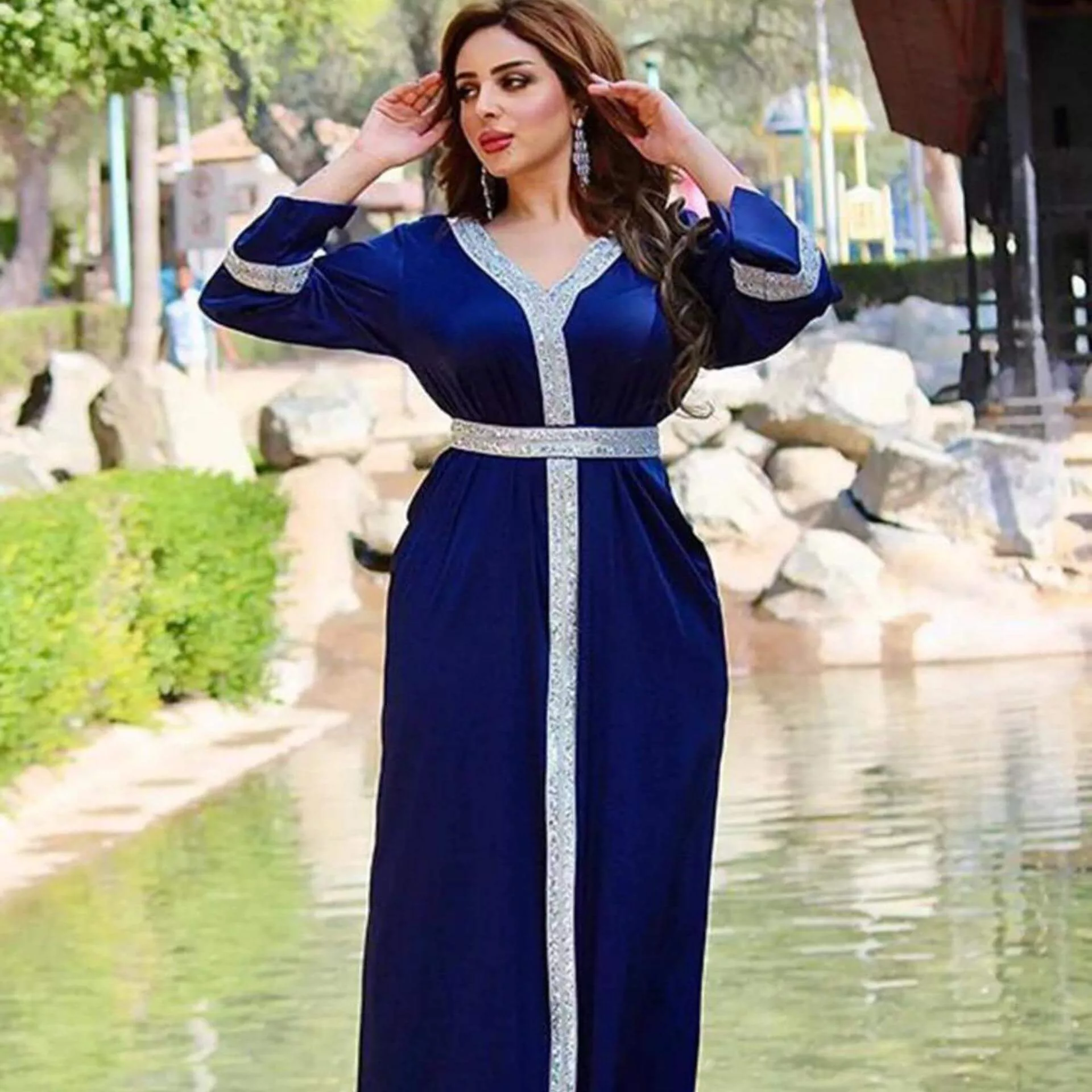 C’est une robe orientale qui nous tient à coeur ! Avec son coloris moderne et ses broderies argentées, elle est à la fois classe et chic !